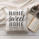 Uma adição encantadora e rústica ao estilo de sua casa de fazenda, esta travesseiro de marfim apresenta "lar doce lar" em letras escuras de cinzas com seu nome de família e ano estabelecido abaixo.