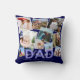 Deixe o pai saber o quanto ele é amado com este moderno travesseiro de colagem de fotos, com dez (10) fotografias de sua escolha que podem ser facilmente baixadas de seu telefone ou computador em um fundo azul-marinho de tendências, o texto - PAI em azul-céu colorido em texto em negrito com a elegante tiopgrafia de script de caligrafia branca 'nós te amamos' no topo. Personalizar adicionando nome(s). O reverso é decorado com marinho na moda e estrelas brancas. Este travesseiro é o presente perfeito para as crianças nos aniversários, dias de os pais ou natal.