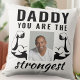 Pai que seja o Travesseiro de Foto do Pai Mais Engraçado. O pai mais forte travesseiro engraçado com o desenho de braços fortes. Adicione sua foto. O texto é tipografia negra. Você pode alterar qualquer texto no travesseiro.