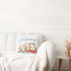 Esta travesseiro decorativo ilustra um filhote fofo e seus pais, um homem careca e uma mulher morena. Você pode personalizar o texto.