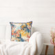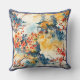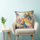 Travesseiro maravilhoso com uma paisagem asiática com pagode em segundo plano. Matizes de marinho, azuis, laranja, amarelas em aquarela macia.