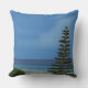 Travesseiro decorativo de Paisagem da Árvore de Pinheiros do Mar de Praia. Ilustração digital da paisagem de pinheiros de praia.