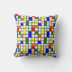 Este travesseiro decorativo tem um design moderno do século médio de uma grade com quadrados e retângulos coloridos. Também tem círculos coloridos colocados nas linhas de grade. Se você gosta do design, mas prefere cores diferentes, me mande mensagem.