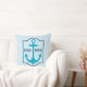 Design de travesseiro de praia personalizado moderno e na moda apresenta um design de âncora de barco inspirado náutico em cores marinhos e azuis lacrimogêneas e texto personalizado que pode ser personalizado com a cidade e o estado de sua casa de praia. A cor azul do céu claro pode ser personalizada para coordenar com o seu decor externo.