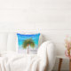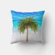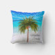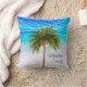 A palmeira de Natal elegante faz parte da cobertura sobre o nome no travesseiro decorativo. Elegante design de Natal Tropical. A Palmeira está num design de fundo de cena de praia. O dorso tem o padrão da palmeira.