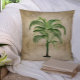 Uma palmeira elegante forma uma cobertura macia de folhas no travesseiro decorativo. Elegante design de Vintage Tropical. A Palmeira está sobre um fundo de design de mármore. O dorso tem o padrão da palmeira.