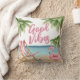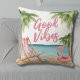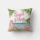 Travesseiro decorativo personalizado da Watercolor Beach House. Um tema legal de praia aquarela com tons cor-de-rosa e cor-de-rosa, colocando a vibração para uma fuga ou vibração da praia. Cadeira branca e rosa, guarda-chuva, e até um flamingo flutuando para diversão extra. Palmeiras balançando, conchas para colecionar — é tudo sobre aquelas vibrações frias da praia tropical. Com fontes modernas adicionando uma reviravolta de na moda. Excelente para uma casa de férias, ou só se você quiser trazer um pouco de vibração tropical para sua casa.