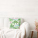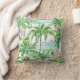 Este travesseiro decorativo de algodão giro apresenta um padrão de palmeira tropical em rosa e verde pré-disquetes.