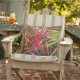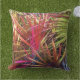 Na trabalho de arte de abstrato por ZoeSPEAK neste Travesseiro decorativo, a motim tropical de cores foi feita a partir de uma fotografia original de palmetto de serra. Algumas das frondes das palmeiras permanecem verdes naturais, mas outras se transformaram em pinças quentes e vermelhos, amarelos, azuis e castanhos quentes, enquanto ziguezagueam entre si no pínus.