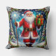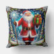 Almofada Papai Noel segurando um presente no meio do invern