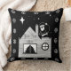 Esta ilustração original de natal do pai feliz sobre esta almofada de natal personalizável foi desenhada em caneta e tinta. A ilustração de natal preto e branco mostra um papai noel bonito carregando seu saco no telhado coberto de neve. Papais noeis realmente se destacam contra o céu estrelado enquanto ele entrega seus presentes de natal. Uma árvore de natal decorada está na janela central e uma estrela grande brilha no céu noturno. Olhar pelas cortinas em outra janela é uma garotinha aguardando ansiosamente a visita dos papais noeis. Esta almofada de natal de natal de contorno preto e branco é personalizável para você personalizá-la com seu próprio texto. Este desenho de papais noeis faz parte de uma coleção de quatro ilustrações de caneta preto-e-branco e de natal de tinta.