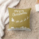 Este elegante travesseiro de Natal ouro apresenta a silhueta de Papais noeis que dormiram com suas renas, voando sobre as casas em um trilho de estrelas. O texto, em uma fonte branca elegante, é totalmente personalizável.
