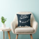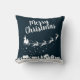 Este elegante travesseiro de Natal azul mostra a silhueta de Papais noeis de trenó com suas renas, voando sobre as casas em um trilho de estrelas. O texto, em uma fonte branca elegante, é totalmente personalizável.