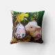 Coelhinho da Páscoa beijando ovelha de vaca Foto de Sandy Closs Easter Bunny / Coelho e ovo preto e branco Ovos de Páscoa com daffodil amarelo. Almofada