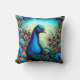 Almofada Par de Pavão Vibrante em meio a flores de descarga