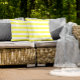 Travesseiros decorativos lombares e quadrados de listras amarelas