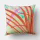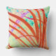 O trabalho de arte moderno neste Travesseiro decorativo exterior/interior foi criado de uma fotografia original de ZoeSPEAK de frondes de palma que se curvavam na brisa. Nesta abstração, as frondes estão em tons de vermelho vermilion, e o fundo de foco suave, que era pinheiros, ficou amarelo com formas de verde e lavanda.