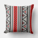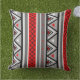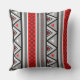 O travesseiro exterior em do sudoeste/asteca inspirou, listras geométricas modernas - vermelho rico do tomate e máscaras de cinzento/cinza com acentos preto e branco