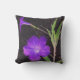 A imagem dramática neste Travesseiro decorativo é uma fotografia original de ZoeSPEAK de petunias mexicanas. As plantas crescem em grupos. As flores são conhecidas por suas lindas sombras de roxo. As flores crescem em caules finos saindo de folhas verdes longas e estreitas. O fundo escuro dispara as cores.