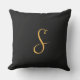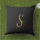 S, ouro em preto, monograma, travesseiro exterior personalizado.