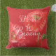 Relaxar ao ar livre na sua varanda, pátio ou veranda é tão agradável quando você é bem-vindo com este adorável design floral de papoila vermelha em papoila e pedaços de matizes verdes do jardim. Ao lado de um desses travesseiros diz "Soak in the Beauty" em arte branca com duas flores de papoila em um fundo vermelho de papoila. O segundo lado tem folhas verdes de samambaia no fundo com papoilas animadas e a mensagem de "Bask in the Warmth".