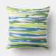 Travesseiro impresso com design abstrato striped em azul, verde e branco, a partir da pintura de aquarela original.
