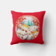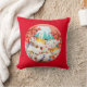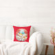 Travesseiro decorativo com gatos sortudos japoneses fofos festejando debaixo da cereja floresce em primavera, com o Monte Fuji e uma boneca Daruma também no fundo.