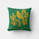 Um travesseiro decorativo festivo encantador com uma foto de um perdiz em uma pera. A imagem tem um efeito de ouro falso e está sobre um fundo verde esmeralda contrastante. Abaixo, encontram-se as palavras da tradicional canção de Natal "No primeiro dia de Natal, o meu verdadeiro amor me enviou, uma papa numa árvore de pera". A almofada elegante faz um presente de feriado ideal para a casa.