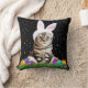 Este acessório fofo e engraçado para amantes de gatos seria excelente de vestir durante uma caçada de ovos na Páscoa. Perfeito para uma mãe de gato ou pai de gato vestir como parte de uma fantasia de Páscoa! Incrível para quando você está caçando ovos pintados escondidos pelo coelho da Páscoa, ou em uma festa de Páscoa! Apresenta uma cinza por gato vestindo orelhas de coelho da Páscoa sentadas na grama da primavera verde com ovos de férias de Páscoa, colocadas sobre um fundo de confete colorido.