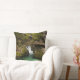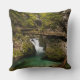 O coxim do travesseiro decorativo da foto com a passagem de madeira sobre o movimento borrou a água através da garganta estreita do desfiladeiro de Vintgar cinzelada nas montanhas em torno do lago sangrado em Slovenia.