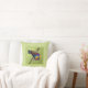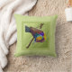 travesseiro decorativo bonito para quem ama pássaros, a natureza e o excelente ao ar livre! Pássaro pintado colorido em um travesseiro verde pálido.