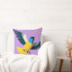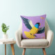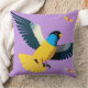 Representação estilizada de pássaro colorido voando graciosamente com um fundo violeta brilhante, exalando alegria e criatividade.