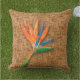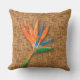 Um exótico pássaro aquoso de uma flor do paraíso em um padrão de impressão de wicker tecido apresentado nesses travesseiros ao ar livre de na moda verão. CORRESPONDENDO a itens na nossa loja.