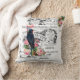 Um pássaro do vintage que senta-se entre rosas cor-de-rosa bonitos é ajustado em um fundo compor de uma propaganda parisiense, completa com o endereço da loja em Paris. Um travesseiro bonito e interessante.