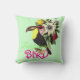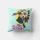 Travesseiro tropical do pássaro. O travesseiro decorativo feminino do estilo do vintage com inteiramente néon do customizabe colore "flores coloridas do pássaro tropical" do texto e um pássaro toucan. Um presente floral do design da flor dos pássaros tropicais à moda bonitos!