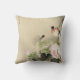Este belo travesseiro decorativo decorativo apresenta um clássico, vintage, impressão de aquarela japonês com um pássaro, flores cor-de-rosa e folhas verdes. Personalize facilmente o texto com seu nome.