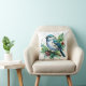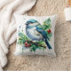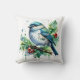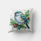 Uma aquarela e uma pintura em forma de splatter de um pássaro giro, poleirado em um galho verde com bagas vermelhas cria um charmoso travesseiro decorativo de férias. Perfeito para quem ama pássaros e natureza.