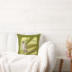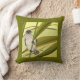 travesseiro decorativo bonito para quem ama pássaros, a natureza e o excelente ao ar livre! Pássaro pintado colorido sobre fundo dourado, colocado em um travesseiro verde-férn.