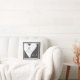 O design do produto apresenta dois pombos brancos empoleirados juntos e olhando para cima em direção a um coração azul claro. Os pombos brancos são símbolos de amor, sorte, paz e prosperidade. Esta ilustração simples de passarinhos fofos torna uma almofada moderna e única com texto personalizado - Ideia de presente para casamento, chá de noiva, aniversário ou qualquer outra ocasião romântica!