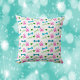 Você está procurando um presente para o amante do cachorro em sua vida? Este travesseiro decorativo apresenta elementos desenhados à mão de patas de cachorro rosa-quente, ossos azuis e a palavra woof em verde.