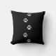 Um simples, mas encantador design mostrando estampas de pata de cachorro esbranquiçada andando por aí e tocando a circunferência dessa almofada preta.
