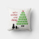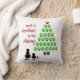 Travesseiro de férias para todos os amantes de estimação. Árvore de Natal feita de estampas de pata, com cão, gato e rato por baixo. "nem uma criatura estava mexendo" escrito no travesseiro. A parte de trás do travesseiro é vermelha com estampas brancas dispersas.