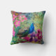 Almofada Pavão Azul Elegante Flores Vermelhos