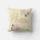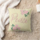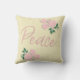 Paz com peonias cor-de-rosa design por Impressões Leebrick. Esta cor de fundo do travesseiro (amarelo-claro é mostrado) é personalizável.