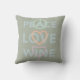 Com cores e símbolos gráficos neutros e macios, sinal de paz, coração e vidro de vinho. Este travesseiro é um excelente adicional a uma casa de amantes de vinho.