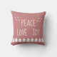 Almofada Peace Love Joy White Script Soft Pink Christmas T