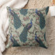 Este elegante sábio pavões, flores magnólias, ramos de travesseiro decorativo floral apresenta um padrão de pavões azuis e lacrimogêneos tocados em galhos de árvores Magnolia com flores de Magnolia floridas, desenhadas à mão a tinta preta, todas contra um pano de fundo verde-senso chic. Esta é a minha opinião moderna sobre o estilo Chinoiserie.