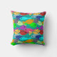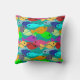 Este travesseiro decorativo tem uma design de uma escola de peixes nadando no oceano em verde, azul, laranja, amarelo, vermelho, rosa e azul-verde. Excelente para crianças!