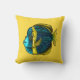 Travesseiro de peixe giro com um trabalho de arte digital representando um anjo tropical engraçado com pestanas compridas em adoráveis cores azul e amarela.