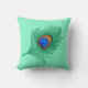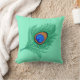 Vector o desenho de uma pena do pavão, aumentado e rendido em um efeito macio do pastel do conte - verde de turquesa/pavão, com oxidação e olho de azuis cobaltos, em um travesseiro decorativo pastel do fundo do aqua